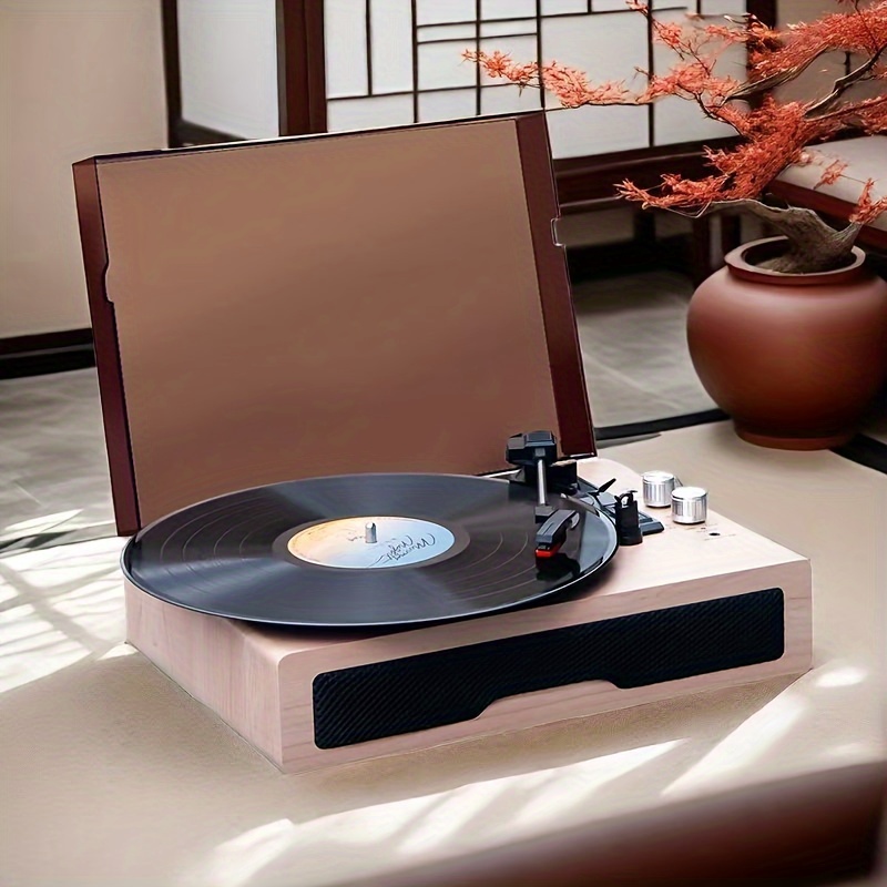 - 1pc Portable Wireless Turntable Record Player with Stereo Speakers, USB Type-C Rechargeable, 3-Speed 33/45/78RPM, Supports Headphone Jack/AUX-IN/RCA Audio Output - Anchurian Ash