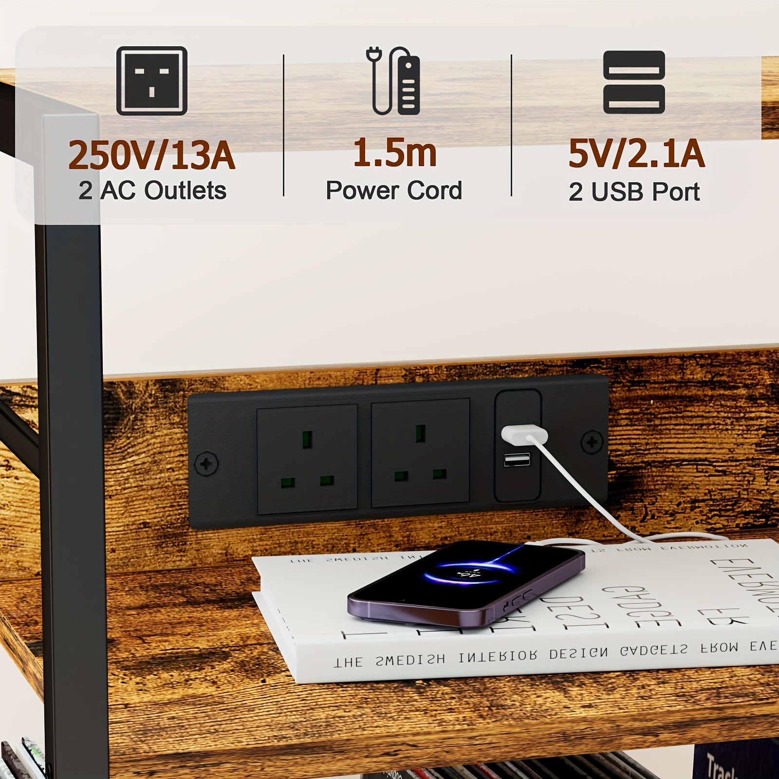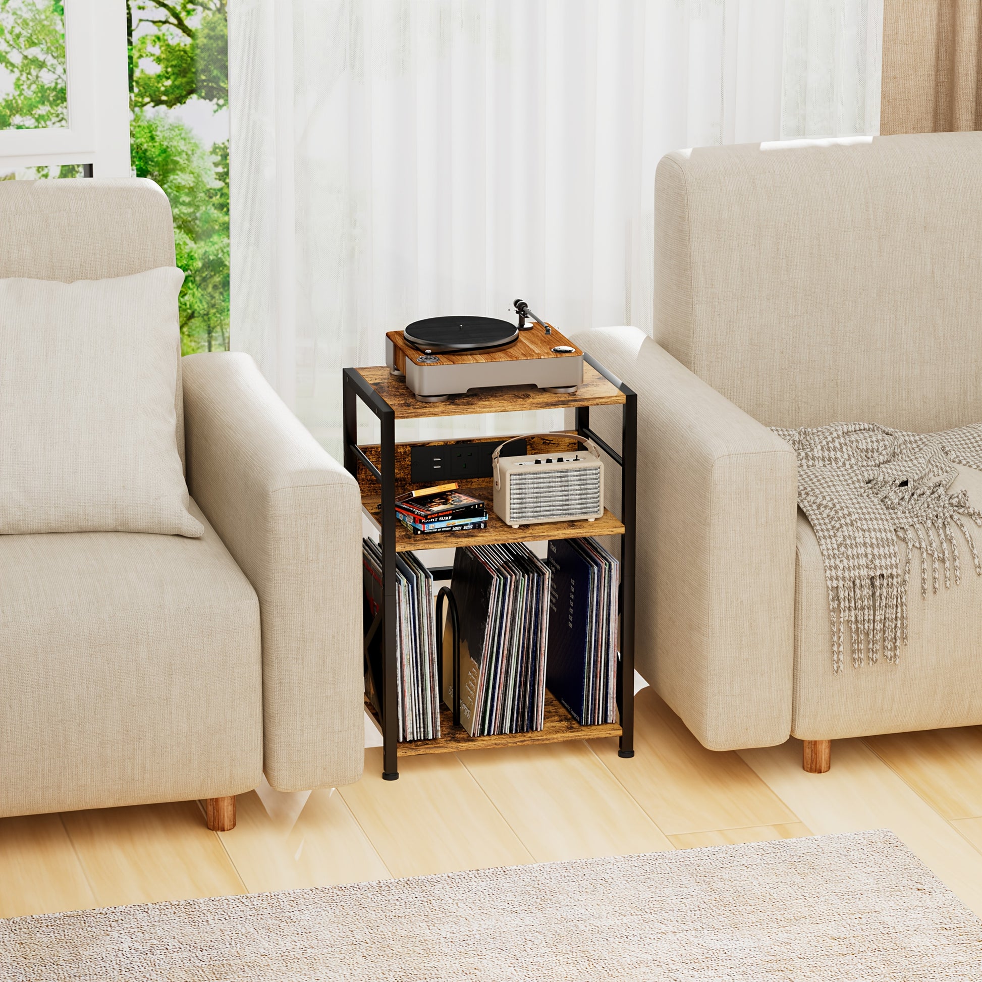 - AMHANCIBLE Vinyl Record Stand Featuring a Socket, Three-Tiered Storage, Holds Up to 200 Albums, Side Table for Turntable, Wooden Side Table for Living Room, Vintage Brown End